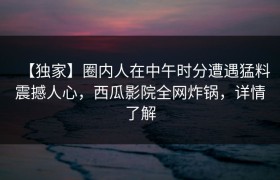 【独家】圈内人在中午时分遭遇猛料震撼人心,西瓜影院全网炸锅,详情了解