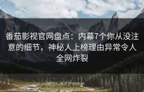 番茄影视官网盘点:内幕7个你从没注意的细节,神秘人上榜理由异常令人全网炸裂