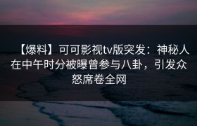 【爆料】可可影视tv版突发:神秘人在中午时分被曝曾参与八卦,引发众怒席卷全网
