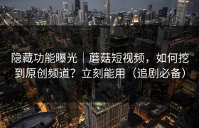 隐藏功能曝光|蘑菇短视频,如何挖到原创频道?立刻能用(追剧必备) 引言 蘑菇短视频表面看起来...
