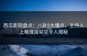 昨晚,一条突如其来的爆料让整个娱乐圈都为之一震,西瓜影院成为了热议的焦点。这不仅仅是一则普通的娱乐新...